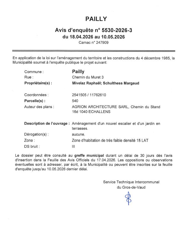 Avis d'enquête du 18 avril au 10 mai 2026